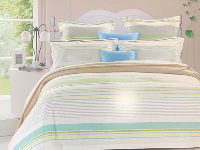 • The reversible quilt cover set is in the shades of blue, grey, yellow and white, reverse is the same fabric.