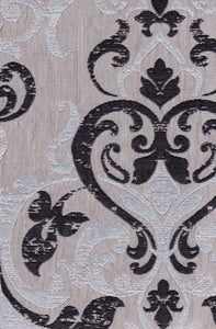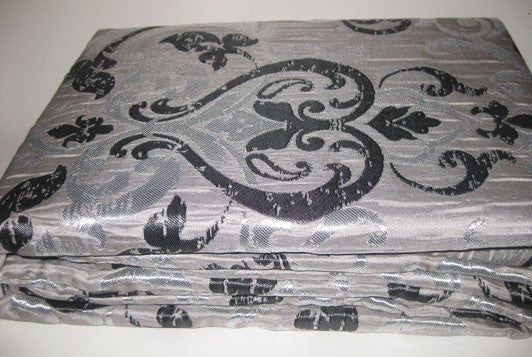 - The front of the quilt cover features a luxurious woven jacquard in grey with black and silver motifs.