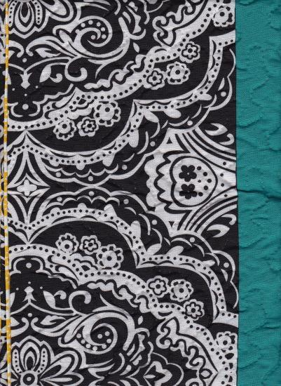 The front of the duvet cover and the pillowcases is the same quilted effect fabric. The reverse of the quilt cover and the pillowcases is coordinating, plain printed fabric.