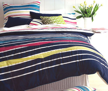 • The quilt cover set has vivid stripes contrast against a navy backdrop to create Spectrum.