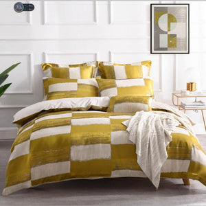 The luxurious jacquard duvet cover set in the stunning design features colour blocking details with the shades of Zesty Green (Yellow) and Natural.