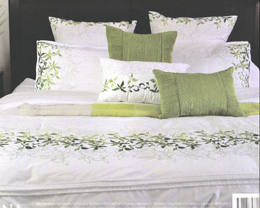 The white embroidered quilt cover set in green thread. Suitable for all styles of interiors and comfortable to the boot.